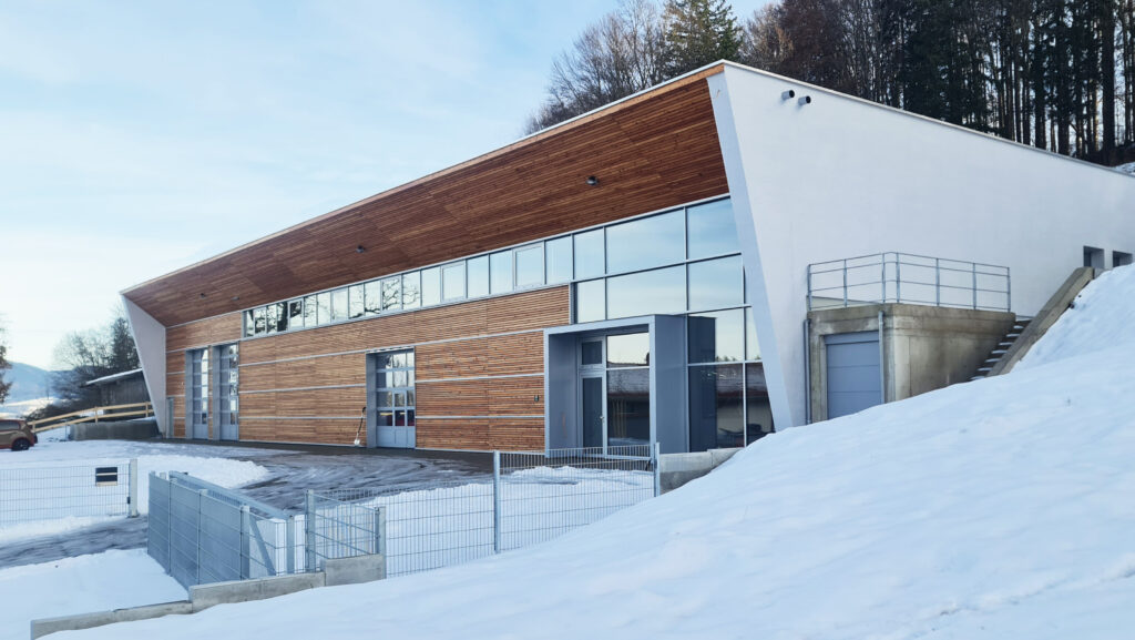 Auch energetisch überzeugt das Gebäude durch seine klare und effiziente Struktur und die optimale Nutzung der Hanglage. Das gesamte Objekt mit einem Volumen von rund 7.000 Kubikmetern wird mittels Bauteiltemperierung ausschließlich über zwei Wärmepumpen beheizt und gewährleistet so ein dauerhaft konstantes Raumklima. Eine Photovoltaikanlage deckt den überwiegenden Strombedarf und ergänzt so das effiziente Gesamtsystem.